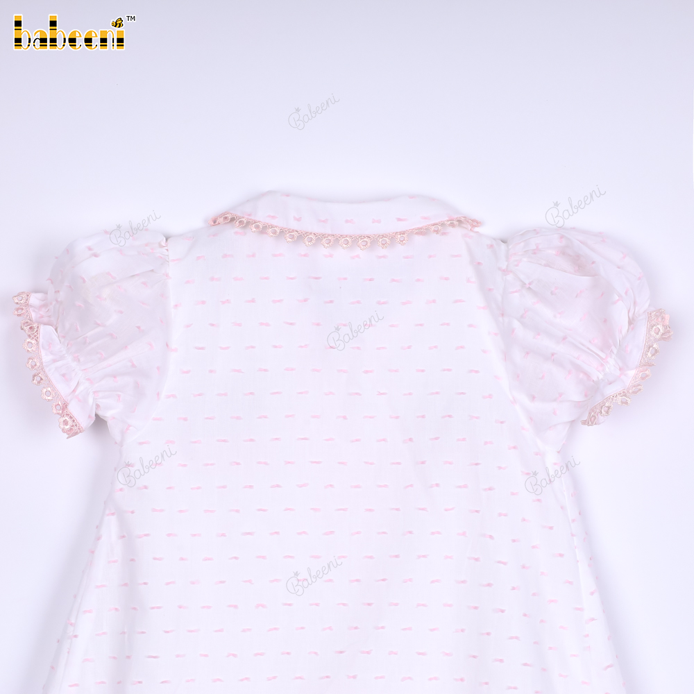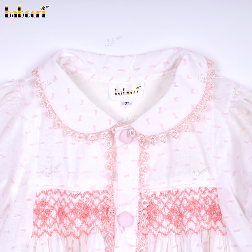 Pink swiss dot Geometric smocked baby dress - BB3100B