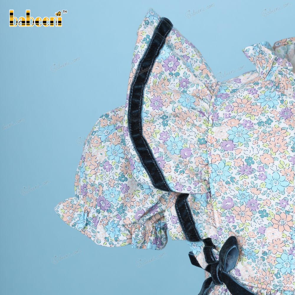 Features: Mallard green outline and green floral plain dress for your baby girl this spring and summer.