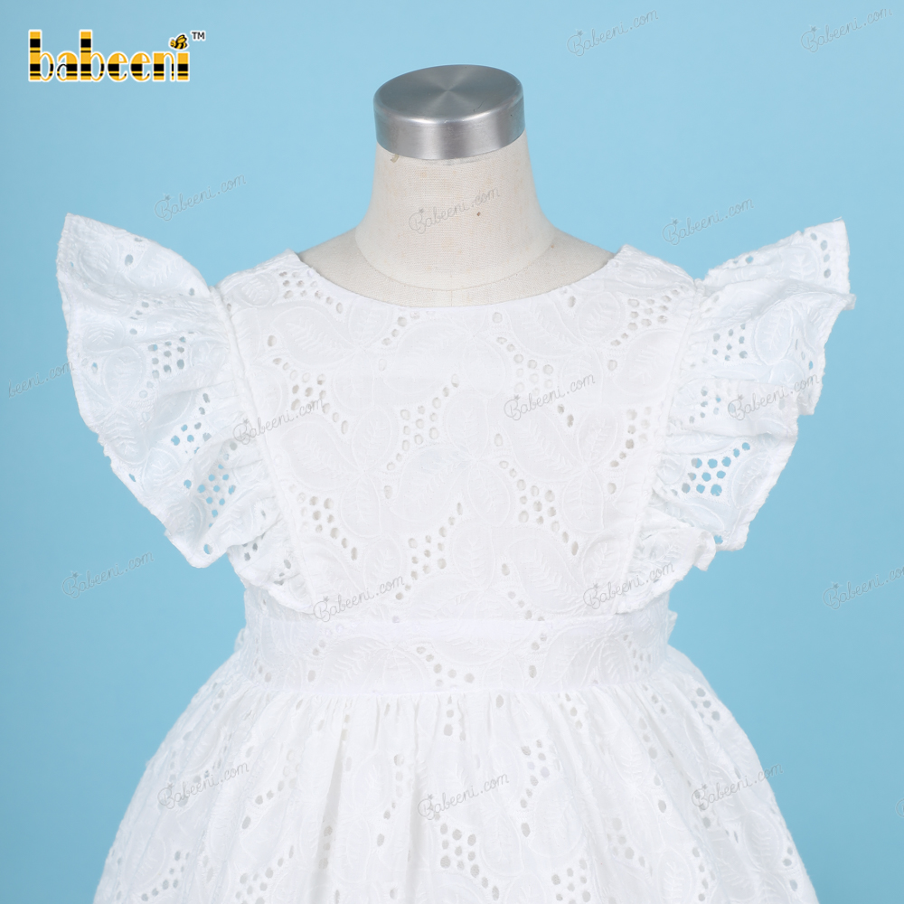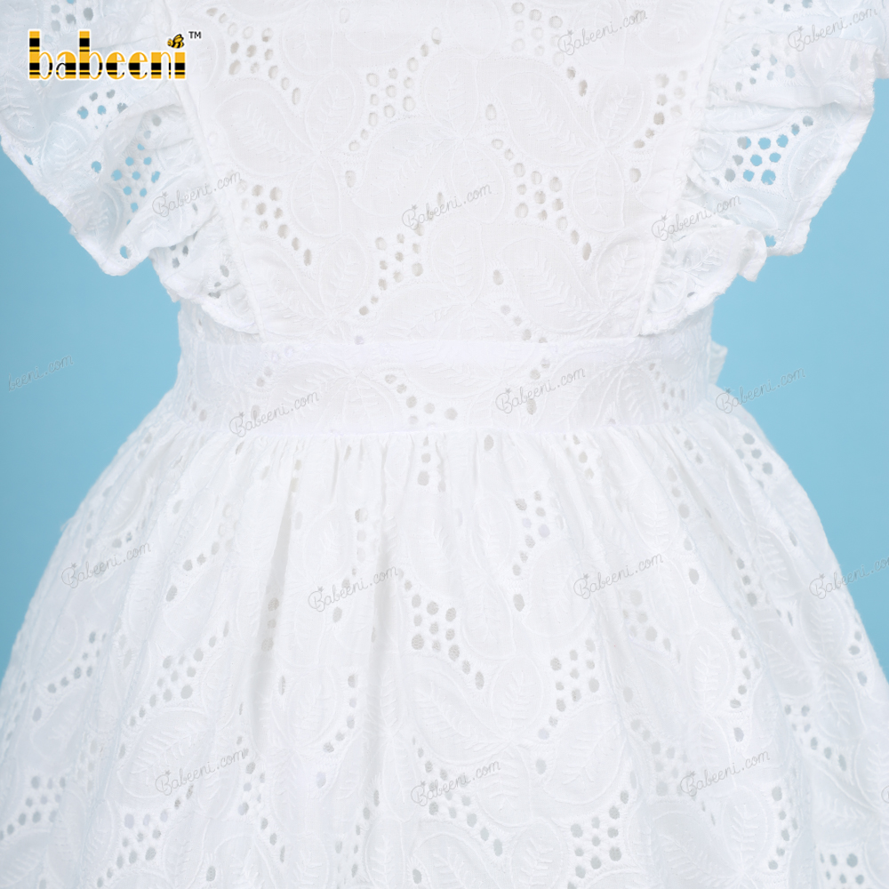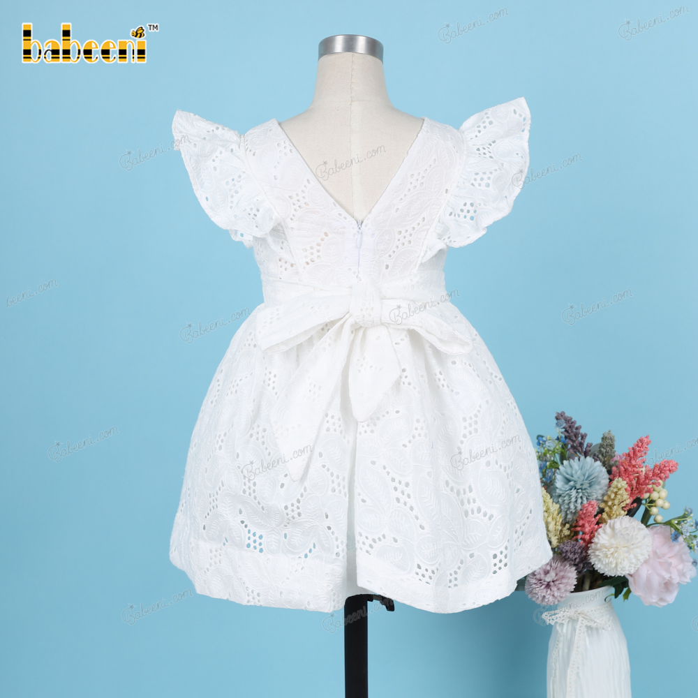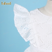 Plain White Belted Dress Embroidery fabric For Girl - BB3224A