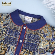 Feature: Nice geometric paisley smocked dress with impressive front buttons, beautiful geometric smocked patterns, short sleeves.