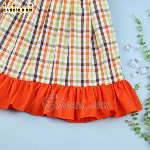 Feature: Nice dress in bishop style for little girl with pumpkin hand smocked patterns on the neck, short sleeves.