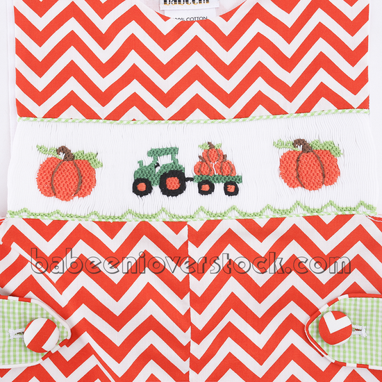 Tags: pumpkin smocked romper, smocked longall, smocked romper, boy longall, thanksgiving clothing, thanksgiving smocked clothing