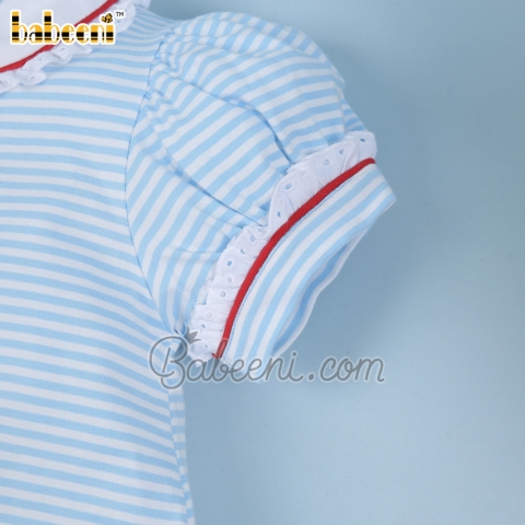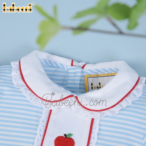 Red apple embroidery blue stripe knit girl dress - BB2161C