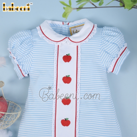 Red apple embroidery blue stripe knit girl dress - BB2161A