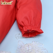 Feature: Nice dress for baby girls on Christmas with reindeer hand embroidery patterns on a large white bib, ribbon on the reindeers, long sleeves. Perfect for Christmas