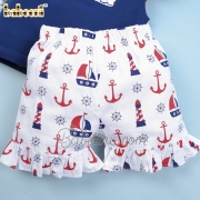 Sailboat hand smocked girl outfit - BB1529