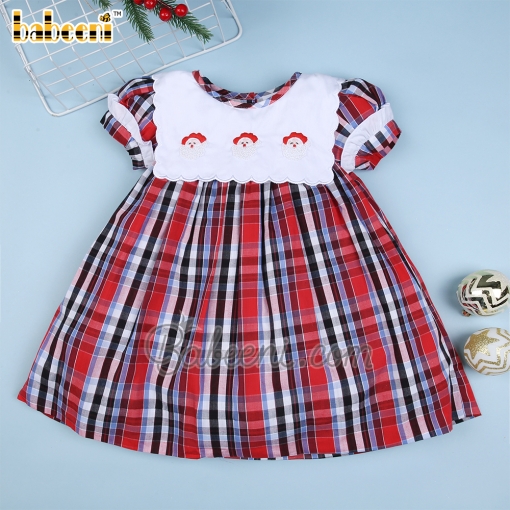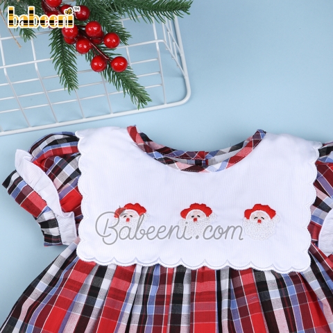 Feature: Girl dress for Christmas occasion with Santa Claus hand-embroidery pattern on scallop square bib, ruffles on sleeves