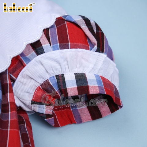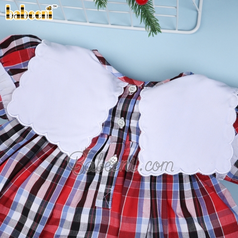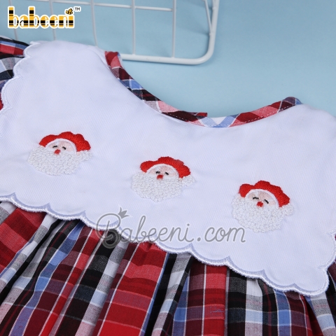 Feature: Girl dress for Christmas occasion with Santa Claus hand-embroidery pattern on scallop square bib, ruffles on sleeves