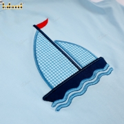 Set includes a T-shirt with embroidered sailboat and checkered shorts.- BB3563