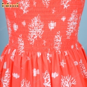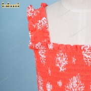 Shirred Dress In Orange White Coral For Girl - BB3262A