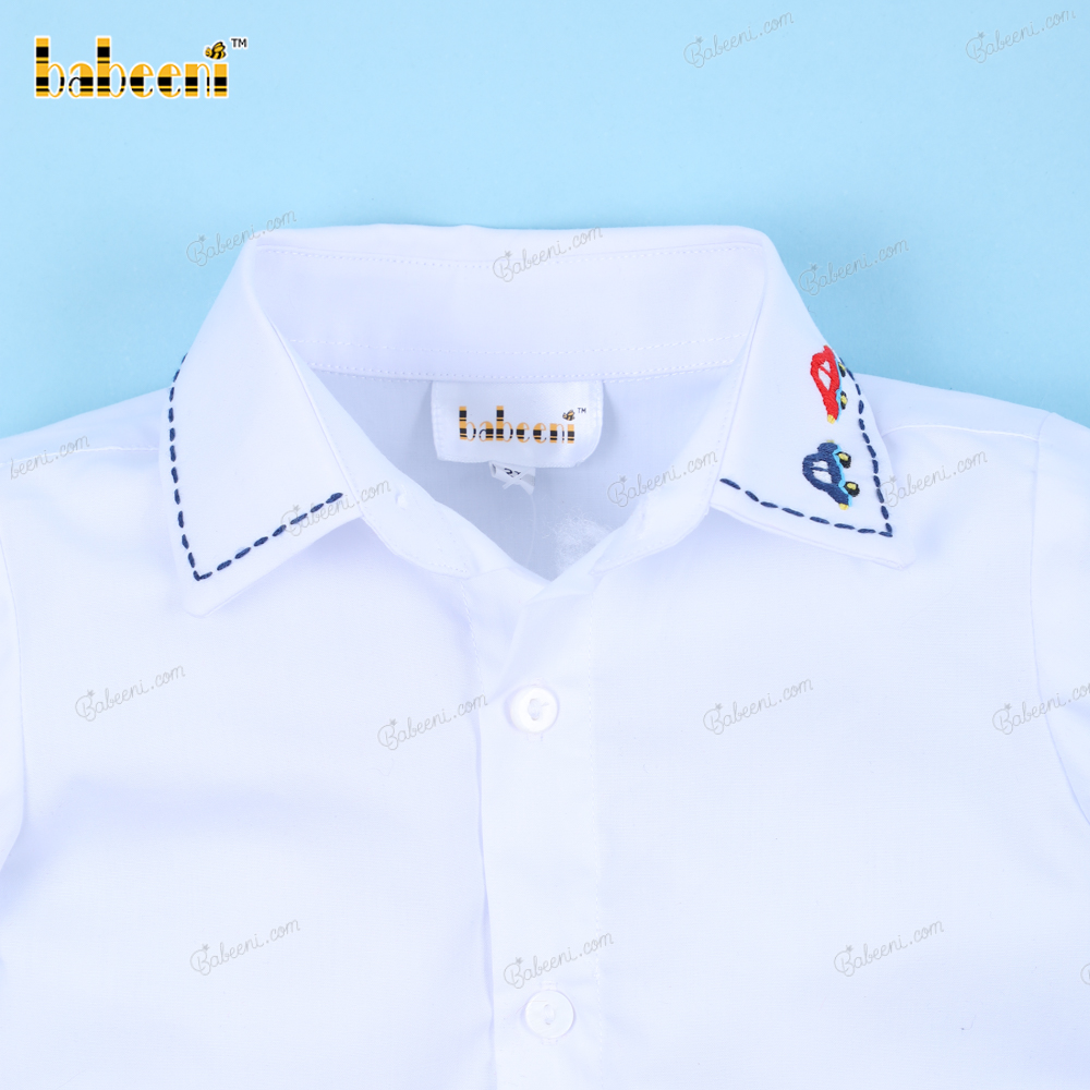 Shirt White Car Hand Embroidery For Boy - BB3250B