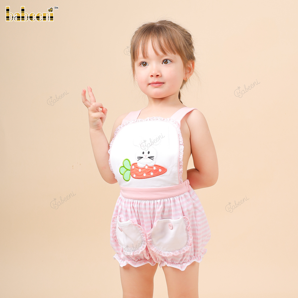 Feature: This cute bubble in pink with a bunny and carrot on the chest. A lovely gift for your girl this Easter eve.
