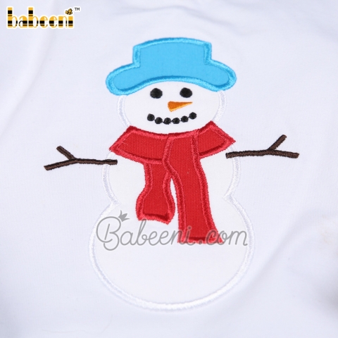 Feature: Lovely Snowman appliqued boy set with Snowman appliqued on the chest, long sleeves.