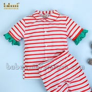 Stripe girl pajama with green ruffles - BB2379A