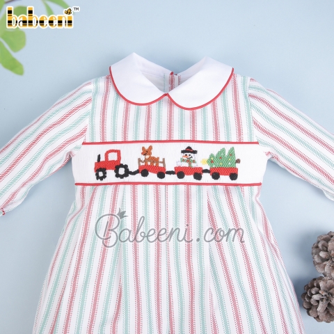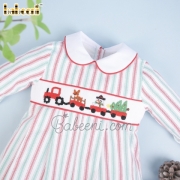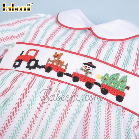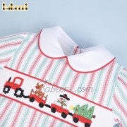 Train carrying Christmas gift smocked boy bubble – BB2854