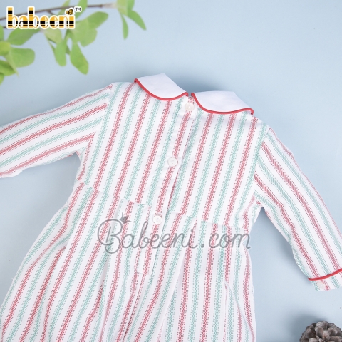 Features: Nice smocked bubble for little boys with hand smocked train carrying Christmas gift on the chest, red piping on collar & sleeves. Perfect for Christmas. Best gifts for birthday or special days.