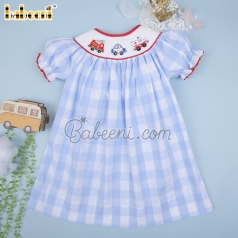 School bus smock boy bubble blue stripe seersucker - BB3389