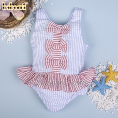 Fancy Pink Swimwear with bow tie and sweet candy pattern For Girl - BB3432B