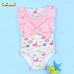 Fancy Pink Swimwear with bow tie and sweet candy pattern For Girl - BB3432A