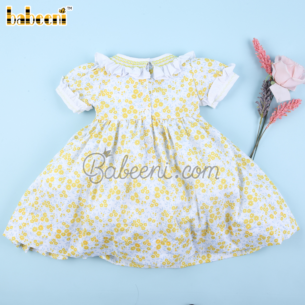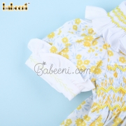 Features: Lovely dress for little girl with yellow flower 4.0 printed, hand-smocked on the chest and around neck, zigzag on hand-smocked, ruffle, puff sleeves. Perfect for Spring Summer. Best gifts for special occasions.