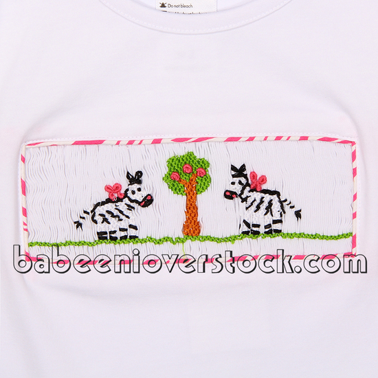 Feature: Beautiful smocked short set with zebra horse hand smocked around the neck, short sleeves.